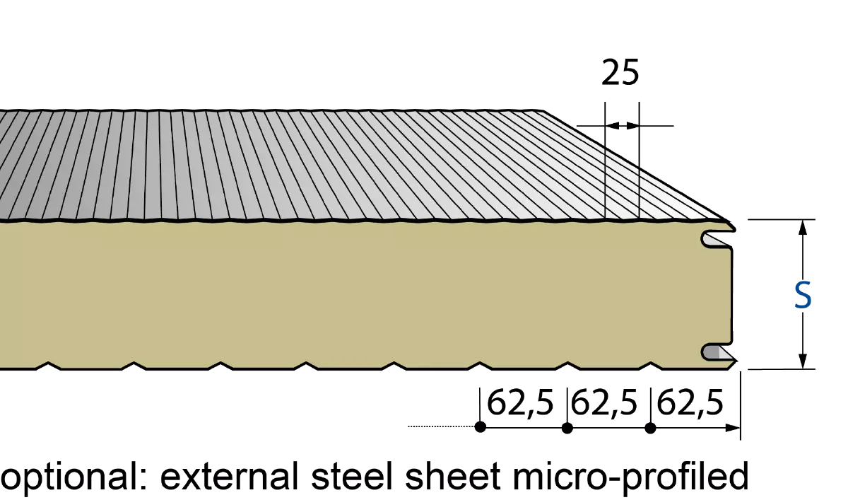 Due to the large number of combinations with other panels from our portfolio (with polyurethane or glass wool insulation core), it is possible to reach fire-safety, acoustic and thermal requirements at once without any visual impact.