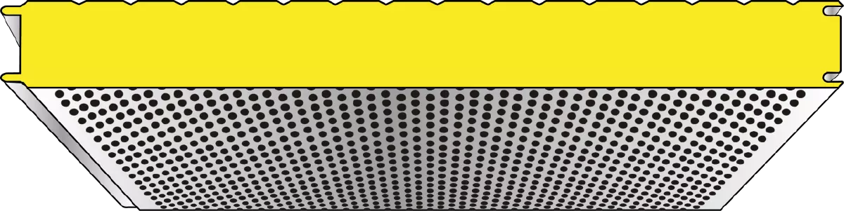 Metfiber® Eco Wall Sound with an insulation core of glass wool is THE solution for buildings with high requirements on sound insulation and sound absorption. The design of the perforated internal sheet improves room acoustics substantially. This system (patented by Metecno) uses a special fleece material as a trickle protection between the internal sheet and the glass wool core. In addition to the outstanding acoustic properties, the glass wool used in this product consists of 80% recycled material, thus contributing significantly to the saving of natural resources and making the product an ecological building material. Generally used as ceiling or partition wall, Metfiber® Eco Wall Sound may also be used as external wall in specific cases, though it is generally not recommended to apply this panel in heated buildings or buildings with high moisture. For additional information, please have a look at our detailed technical manual.
